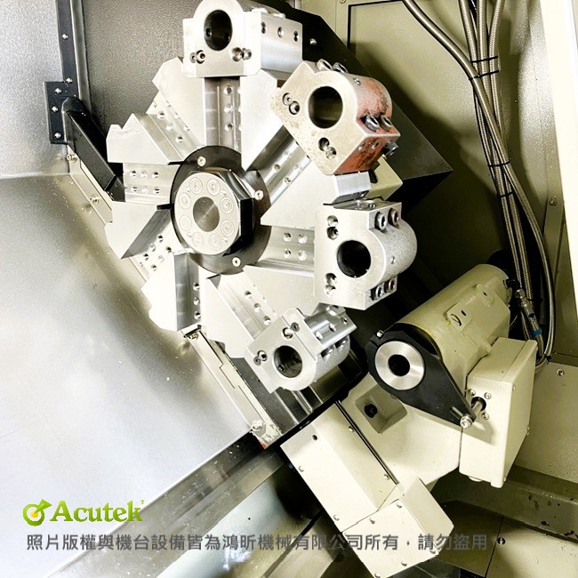 高效率刀塔: 快速換刀設計,有效縮短非切削時間,極大化您的生產效率 。
